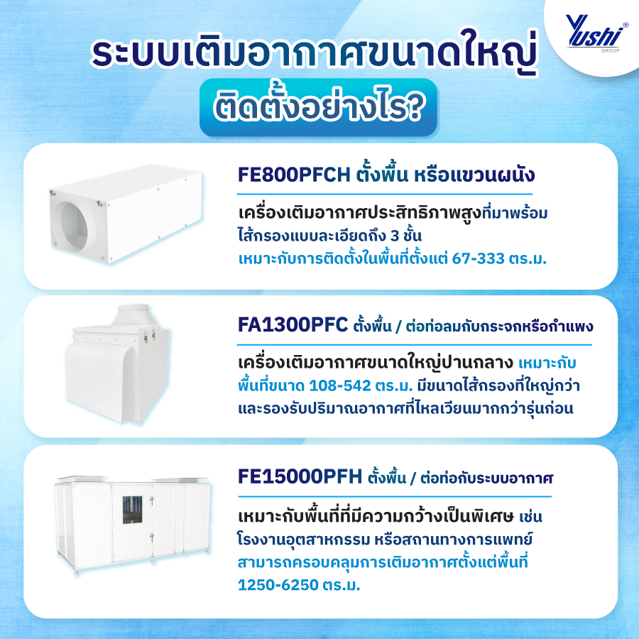 • คุณสมบัติโดยรวม​ – เครื่องเติมอากาศของเราสามารถปรับสภาพอากาศในพื้นที่ของท่านให้เป็นพื้นที่แรงดันบวก​ (Positive Pressure)